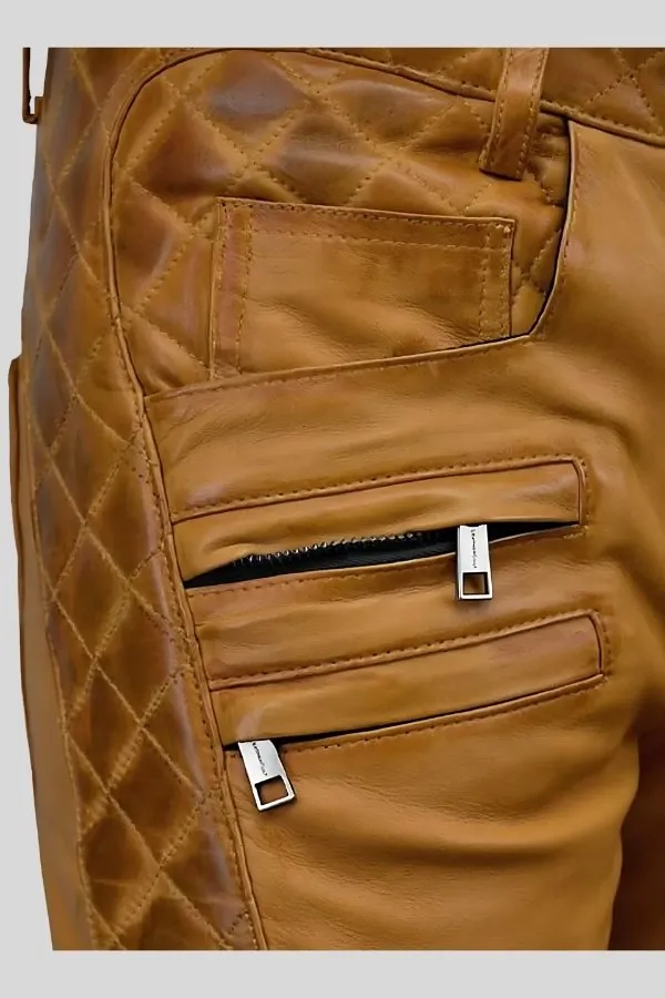 Men’s Waxed Leather Biker Pants – Rugged Motorcycle Style