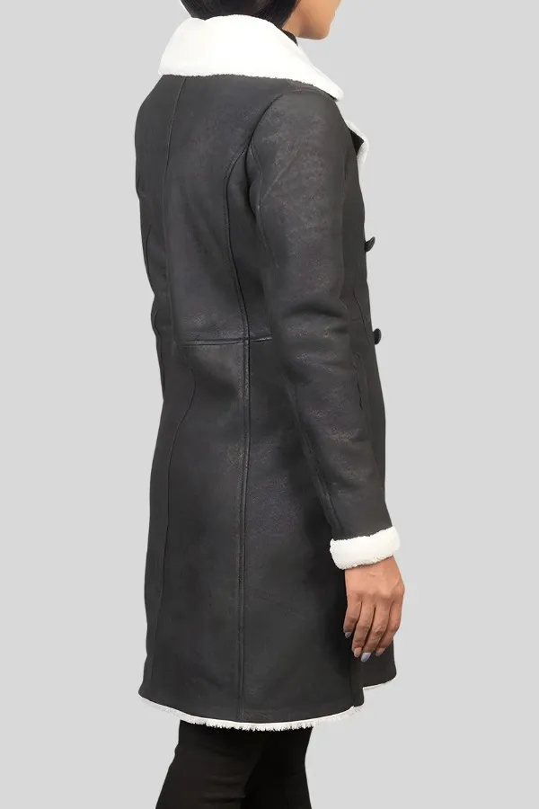 Women’s Black Shearling Leather Coat – Double-Breasted
