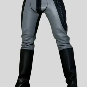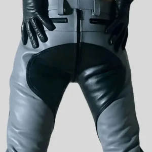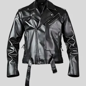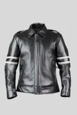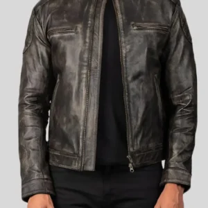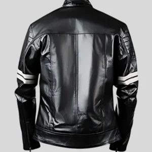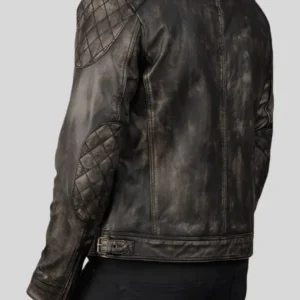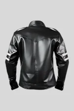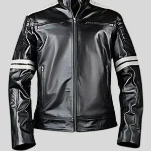 Black Biker Leather Jacket for Men with Grey Arm Bands