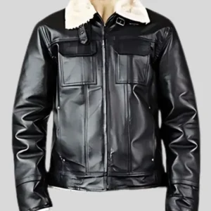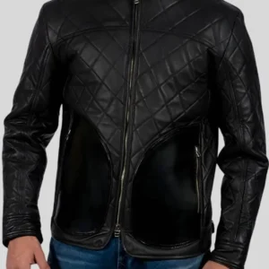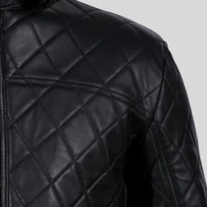 Black Leather Biker Jacket for Men – Quilted Shoulder Style