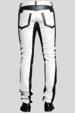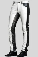 Men’s Black and White Leather Pants – Stylish Two-Tone Design