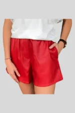 Women’s Red Genuine Leather Shorts – Bold & Stylish