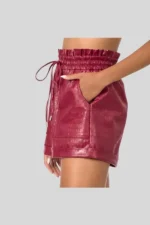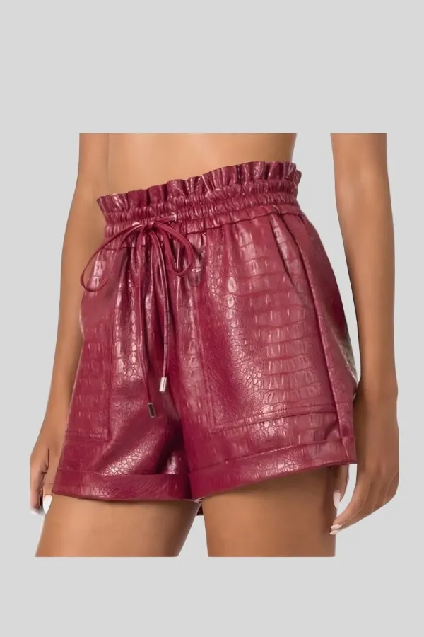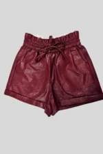 Women’s Maroon Genuine Leather Shorts – Elegant & Timeless Look