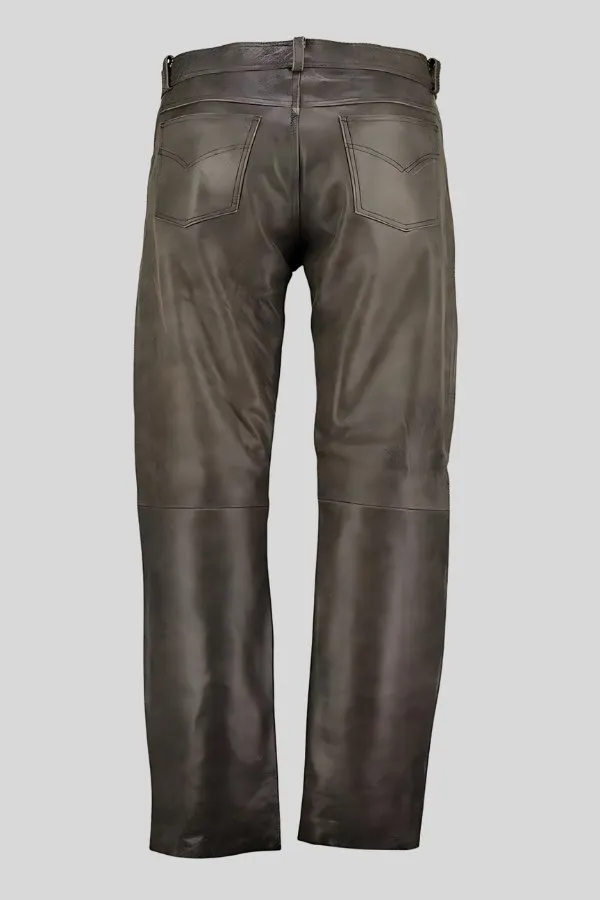 Men’s Black Distressed Leather Motorcycle Pants – Rugged Biker Style
