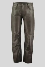 Hit the road in style with the Men’s Black Distressed Leather Motorcycle Pants from Zyra – designed for rugged biker fashion and durability. Handmade from 100% genuine soft sheep leather, these men’s leather pants offer a comfortable fit, sleek design, and a timeless biker aesthetic.