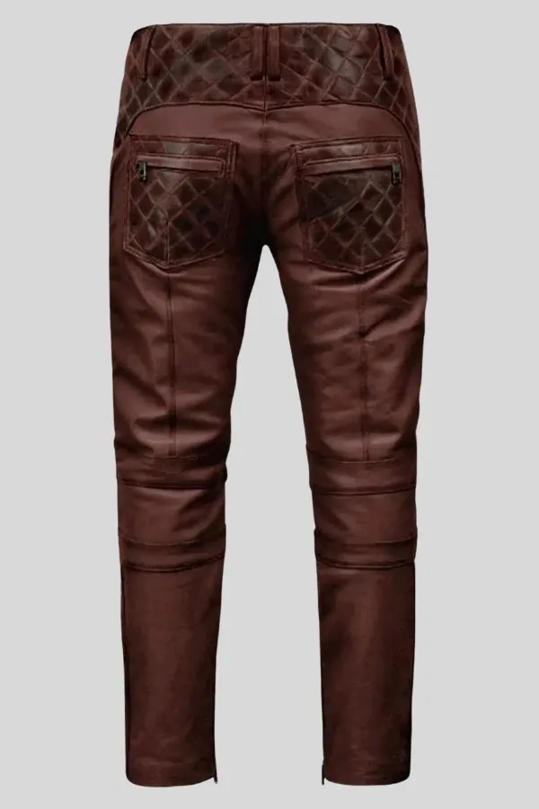 Men’s Outlaw Burnt Maroon Leather Pants – Bold Stylish Fashion