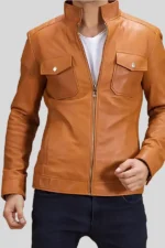 Men’s Brown Troubled Leather Racer Biker Jacket – Vintage Street Style