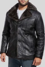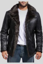 Men’s Black Shearling Leather Jacket – Classic Warm Outerwear