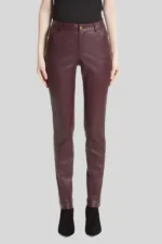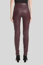 Women’s Classic Maroon Real Leather Smart Fit Pants – Tailored Style