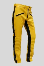 Be the first to review “Men’s Yellow Leather Pants with Black Stripe Design – Bold Stylish Look”